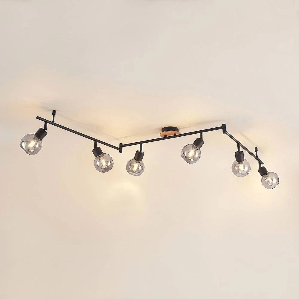 Eridia 6 Plafondlamp Black/Wood – Lindby – Koop Online